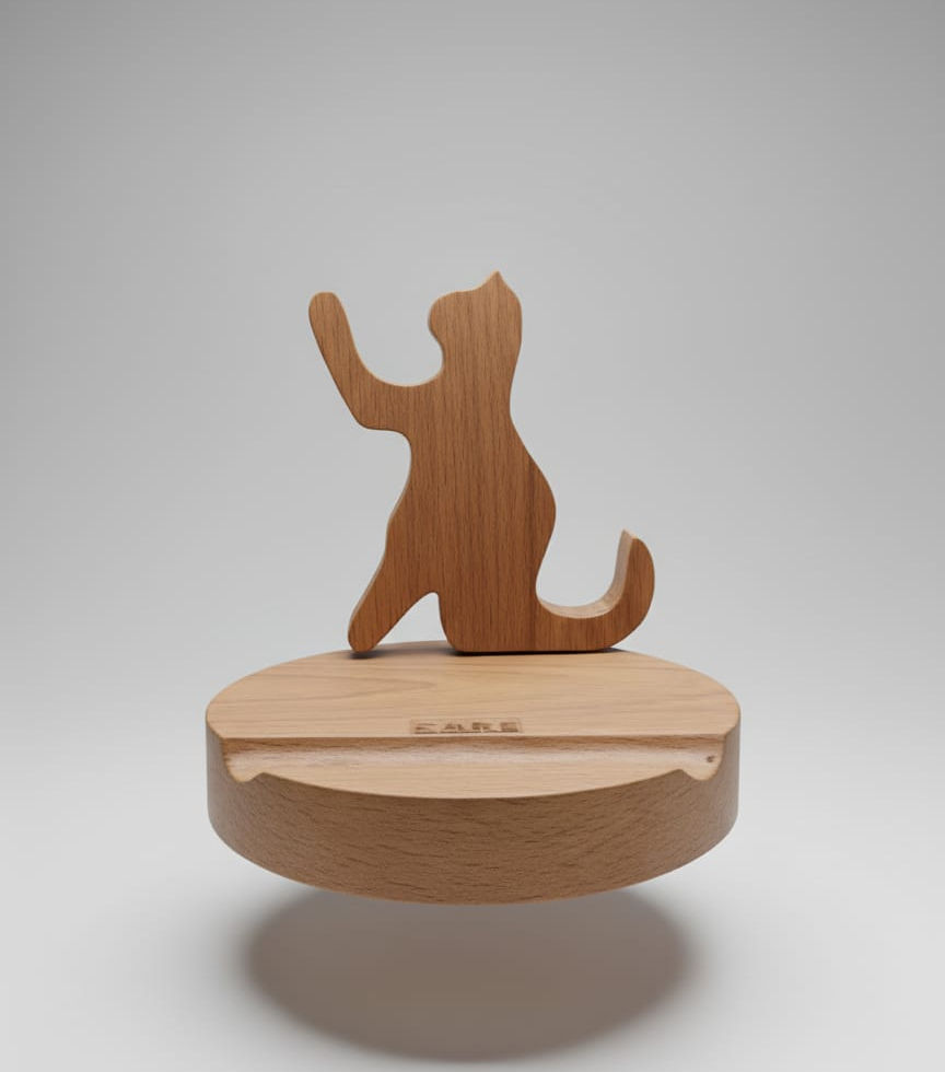 Add a touch of feline charm to your desk with this handcrafted wooden cat phone stand. Functional, elegant, and made with care, it supports your phone while showing your love for rescued animals.